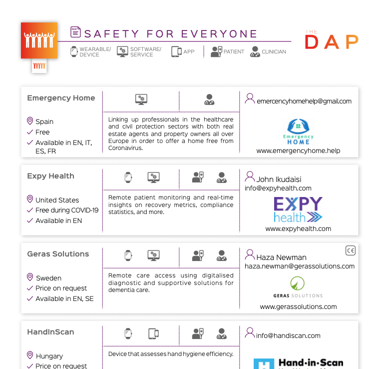 Free tool | Interactive PDF, always updated with the latest solutions available on the market. The product is available in 4 languages; Spanish, Italien, Portuguese and English but soon in German, Romanian, Russian and Arabic. The product is being used by so many professionals in the health industry as could be in institutions, healthcare and patient organisations and clinicians. As well as patients in long-term care facilities, friends, and family members.